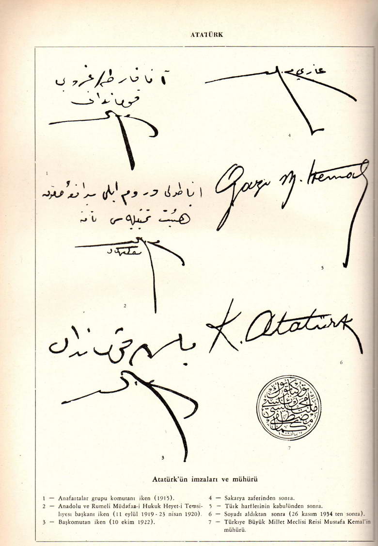İnönü Ansiklopedisi ise birçok internet sitesine kaynak teşkil etmiştir. Fakat diğer imzalarla birlikte soyadı kanunundan sonra “Atatürk’ün kaşesindeki imzanın olduğu sayfa” görülmektedir. Bu ise Atatürk’ün diğer ıslak imzaları olmadığı anlamına gelmemelidir. Sadece Atatürk değil her insanın değişik zamanlarda elini/parmaklarını kullanarak çok bariz değişiklikler olmamak üzere farklılıklar içeren imzalar atabildiği unutulmamalıdır. Islak imza ile kastedilen bir kişinin kalemle bir kâğıda doğrudan kendi imzasını atmasıdır. Kaşe ise sürekli imza kullanmak durumunda kalan genelde resmi makamlarda çalışanların tercih ettiği imza kullanmayı kolaylaştırma aracıdır. Eskiden kabul gören kaşenin yerini günümüzde elektronik imza almıştır. Bununla birlikte insanlar ıslak imzalarını da atmaktadır.