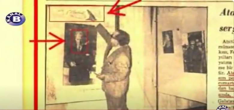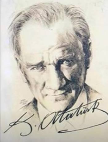 (Cemal Işıksel’in 1931 yılında çektiği Atatürk fotoğrafı ile 1965 yılında Cemal Işıksel’in Atatürk fotoğrafına monte ettiği Atatürk’ün özgün imzasının Etem Çalışkan tarafından birleştirilmiş kara kalem çalışması) (Cengiz ÖZAKINCI Kanal B)