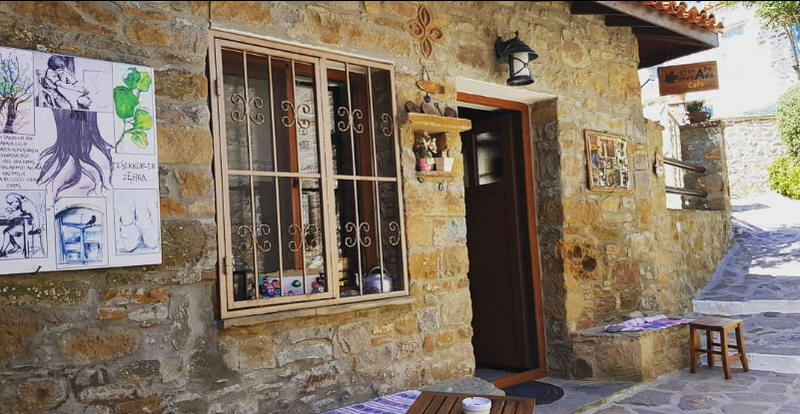 Bakkal dükkânından dönüştürülen Stenada kafe, Bademli/Gliki