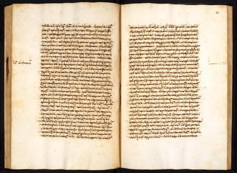 Romanos (Topkapı) burcunun arkasında imparatorun yanında hazır bulunan Sfrancis’in, Ulubatlı Hasan’ın otuz sekbanıyla birlikte surlara çıkış ânı ve devâmında yaşanan gelişmeleri sıcağı sıcağına aktardığı Chronicon Maius’undaki çağdaş satırları. Chronicon Maius, British Library, Add. Ms. 36539, f. 84r-84v.