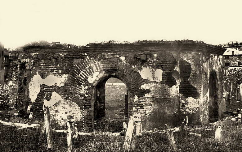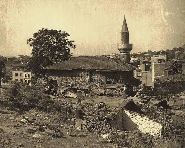 1925’te yıkılıp ortadan kaldırılacak olan Balaban Ağa Mescidi’nin daha önce geçirmiş olduğu yangından sonraki durumu. Alman Arkeoloji Enstitüsü Arşivi: D-DAI-IST-R-6072.