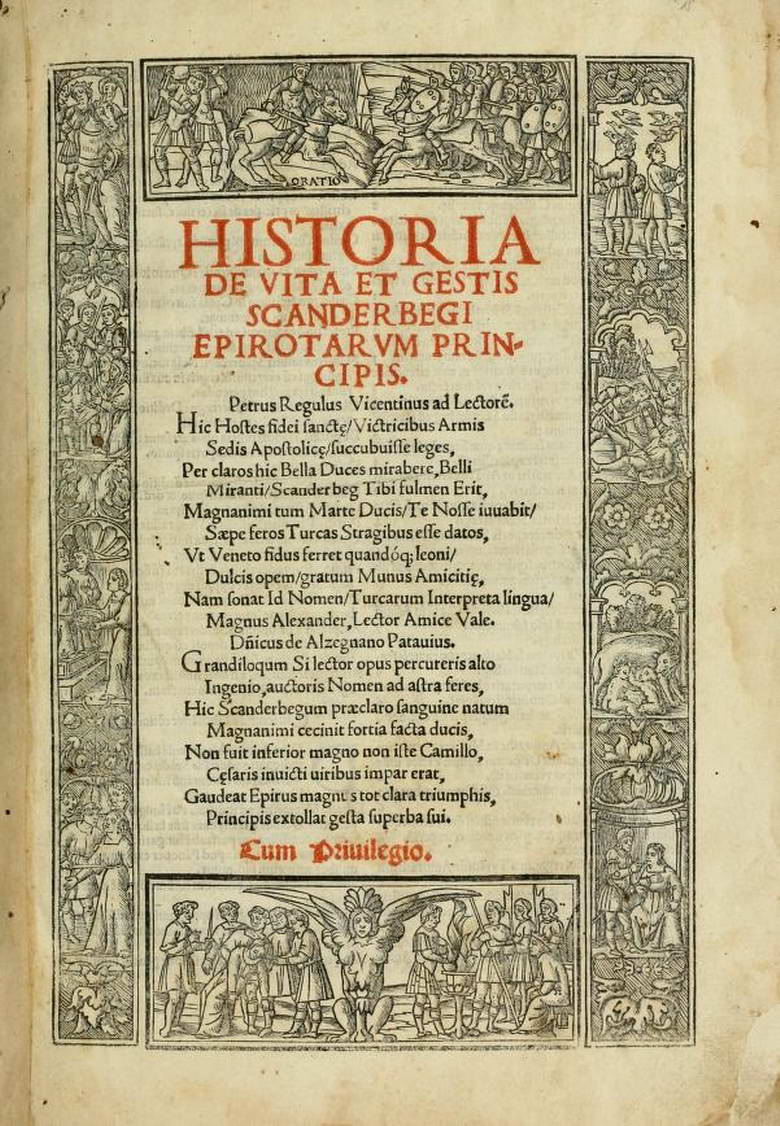 Balaban’ın yaşamı ve İskender Kastriota ile savaşları hakkında bilgi veren en önemli kaynak olan Marin Barleti’nin Historia de Vita et gestis Scanderbegi Epirotarum Principis adlı eserinin kapak sayfası (Strasburg, 1537).
