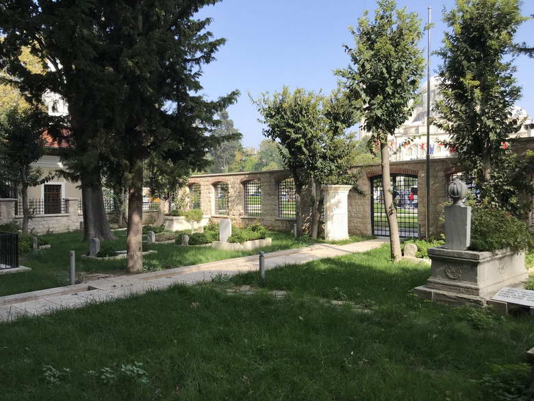 [27]“Ḳabri mescidden bir miḳdār baʿīd bir ḫānenüñ baġçasında bulınmaġla, ḫāneʾ-i mezbūruñ ṣoḳaġa olan penceresinden ziyāret olınur idi. Baʿde-zamān pencereʾ-i mezbūre sedd olınup baġçanuñ dāḫilinde ḳalmışdur.” Ayvansarâyî Hüseyin Efendi, Ḥadīḳatü’l-Cevāmiʿ, I, Matba’a’-i ‘Âmire, İstanbul 1281/1865, s. 60.