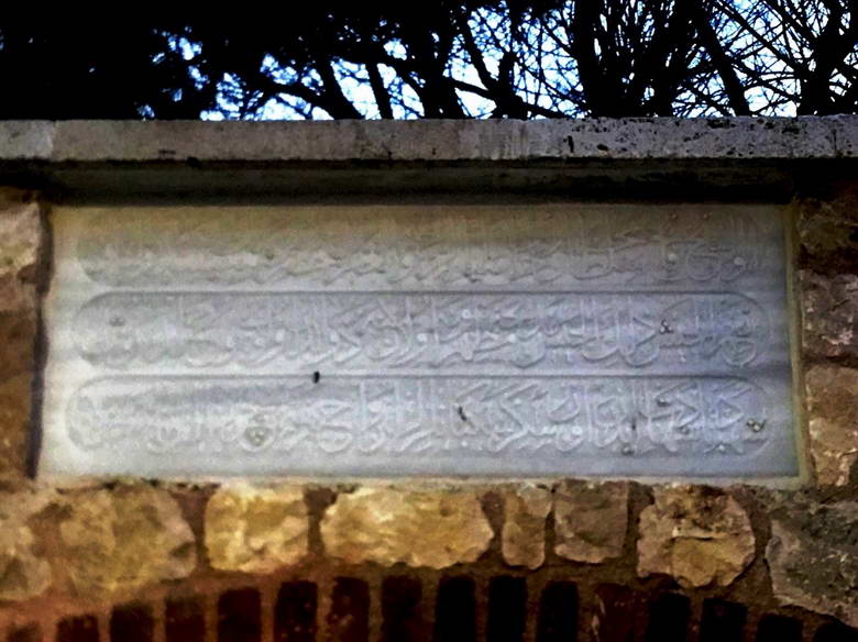 On Sekiz Sekban şehidler hazîresinin Hâcet penceresi üzerine, 1837 depreminden sonra, Sultan II. Mahmud’un emriyle yerleştirilmiş olan kitâbe. Fâtih – İstanbul.