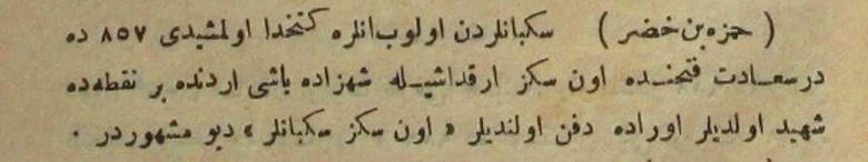 Ol Şehīdler Serdārı’nuñ nāmını eylemiş pinhān